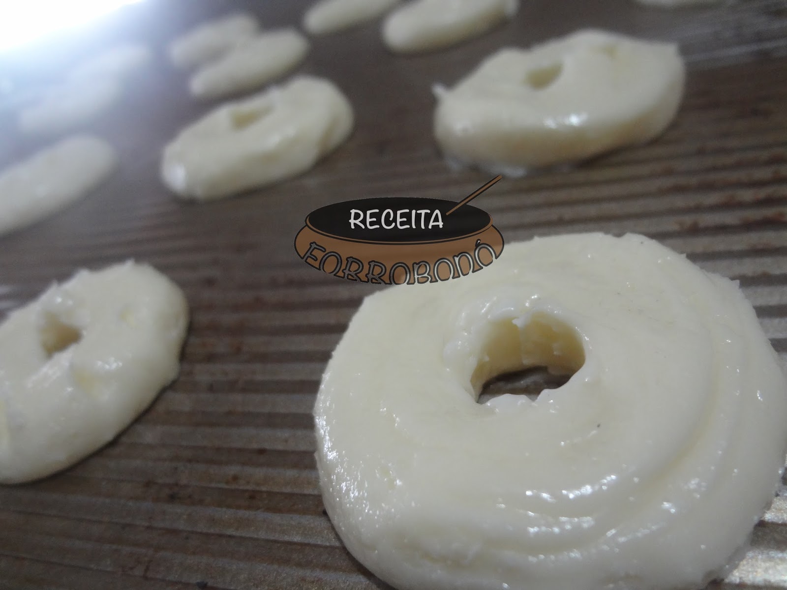 Levar ao forno pre aquecido ate que o fundo do biscoito fique levemente dourado. Preste atencao, a parte de cima tem que ficar branca, se dourar, vai ficar duro seu biscoito, ok?
